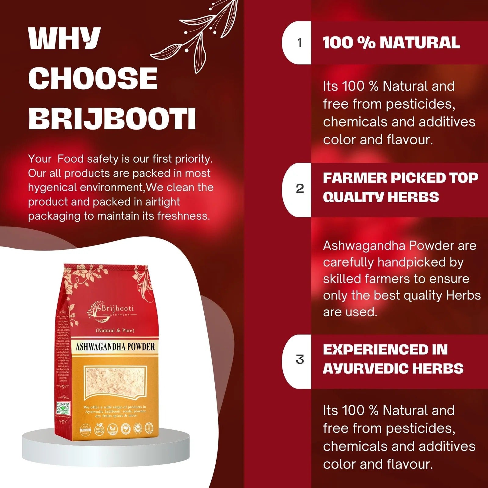 • 100% pure and natural Ashwagandha powder for daily use.