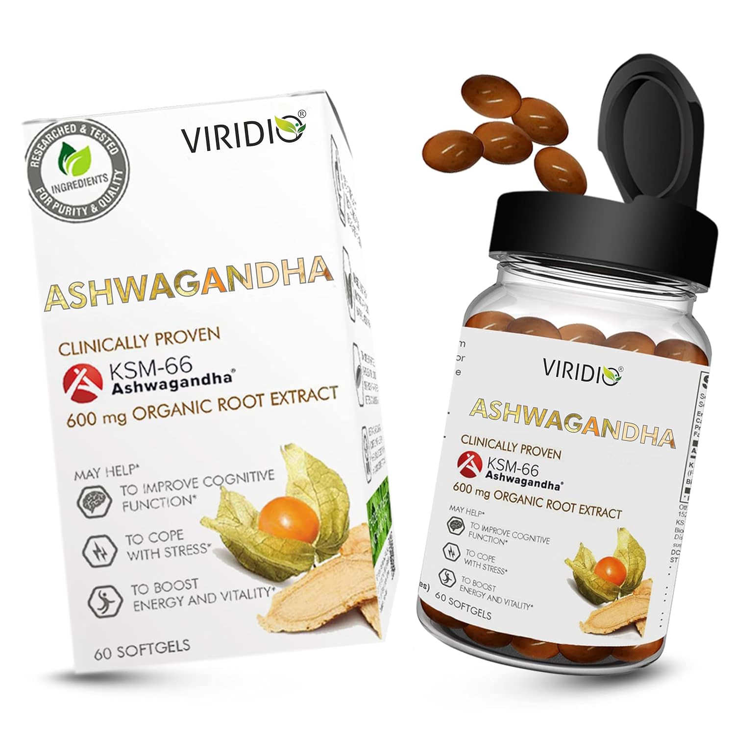 Viridio Ashwagandha KSM 66 Capsules - 60 Softgels