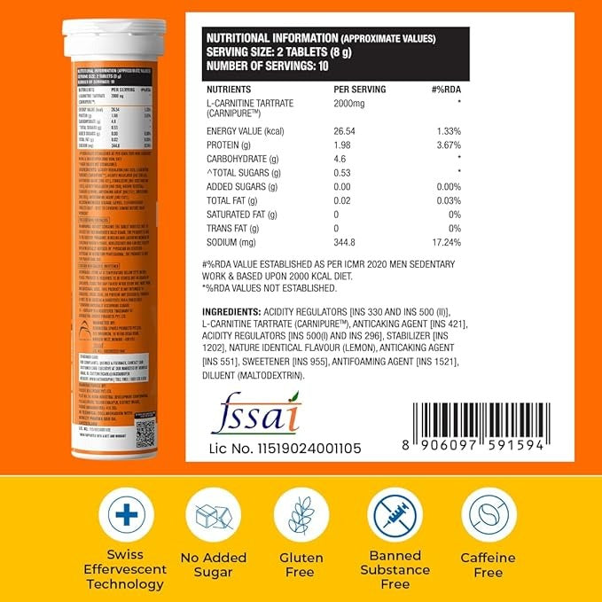 - Fast&Up L-Carnitine 1000mg Advanced Effervescent Tablet Orange is a fast-absorbing tablet that actively burns fat and helps build muscles.