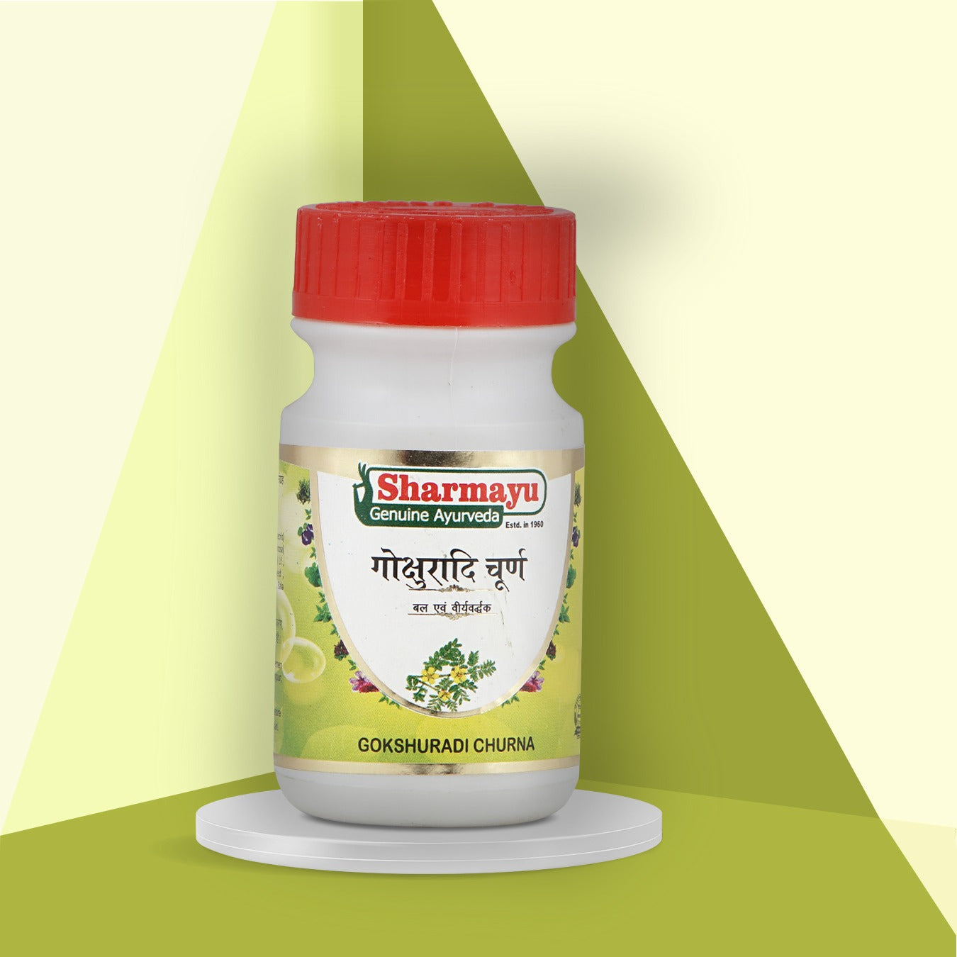 - Sharmayu Ayurveda Gokshuradi Churna is beneficial in all disorders of the urine, stones, leucorrhoea, gout, and bladder.