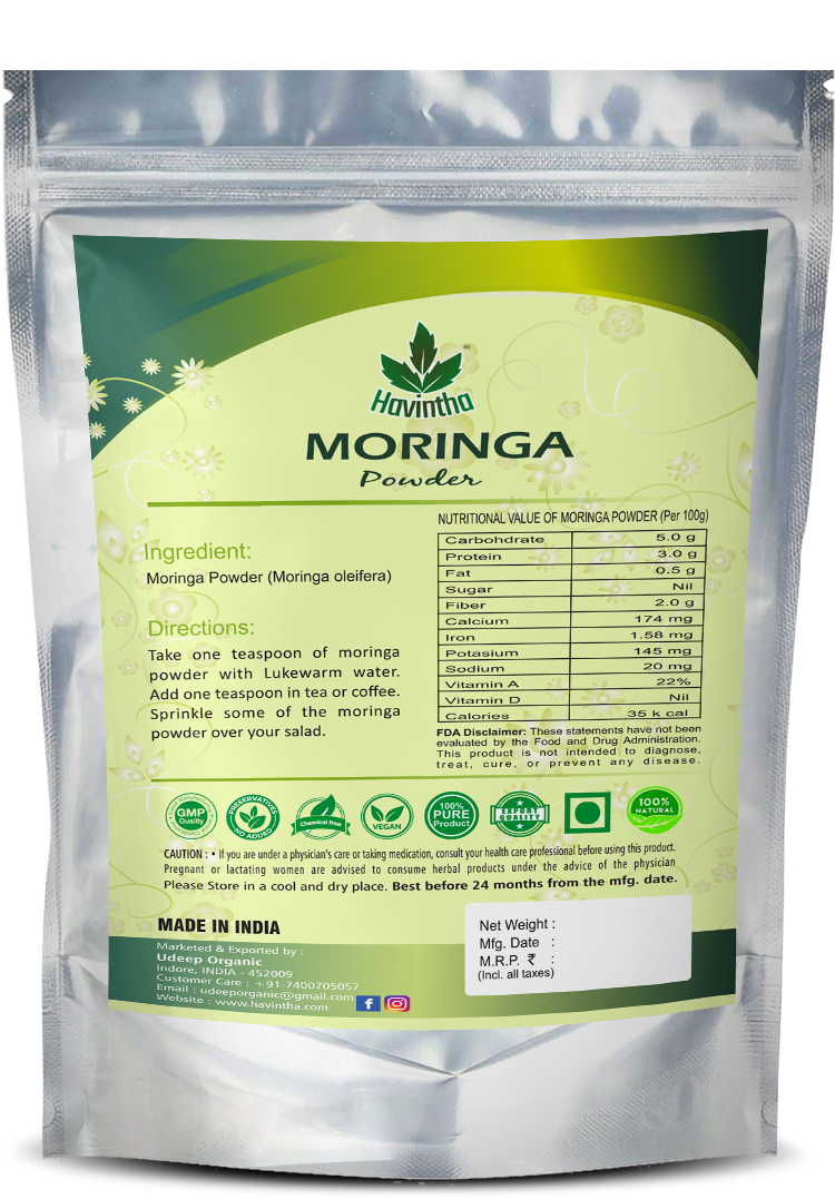 • Gives Instsnt Energy : Moringa powder is highly nutritious and full of minerals and antioxidants. It is great to give you a sudden boost of energy.