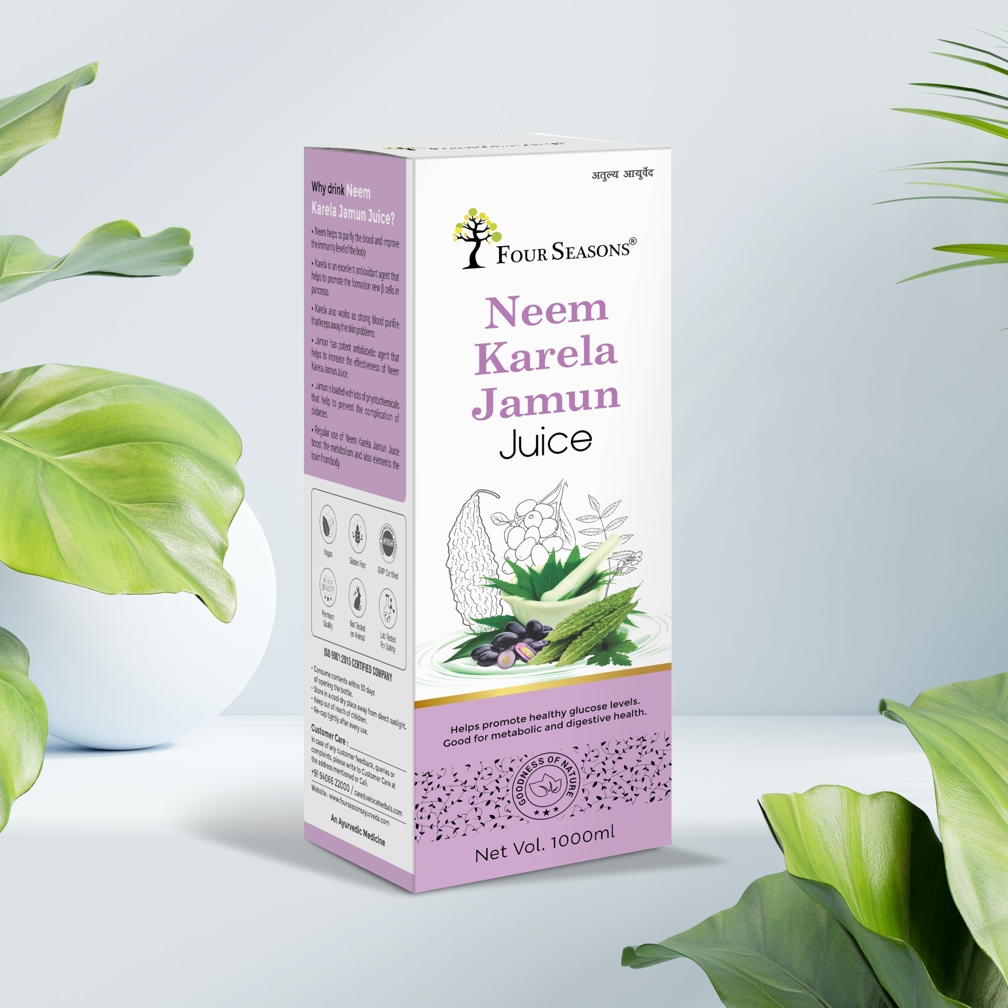 - Four Seasons Neem Karela Jamun Juice is a traditional herbal blend made from carefully selected ingredients.