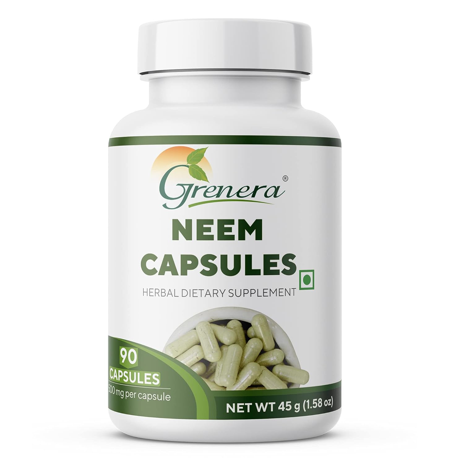 • Grenera Neem Capsules for healthy skin and hair, balance blood sugar levels, 90 Veg Capsules