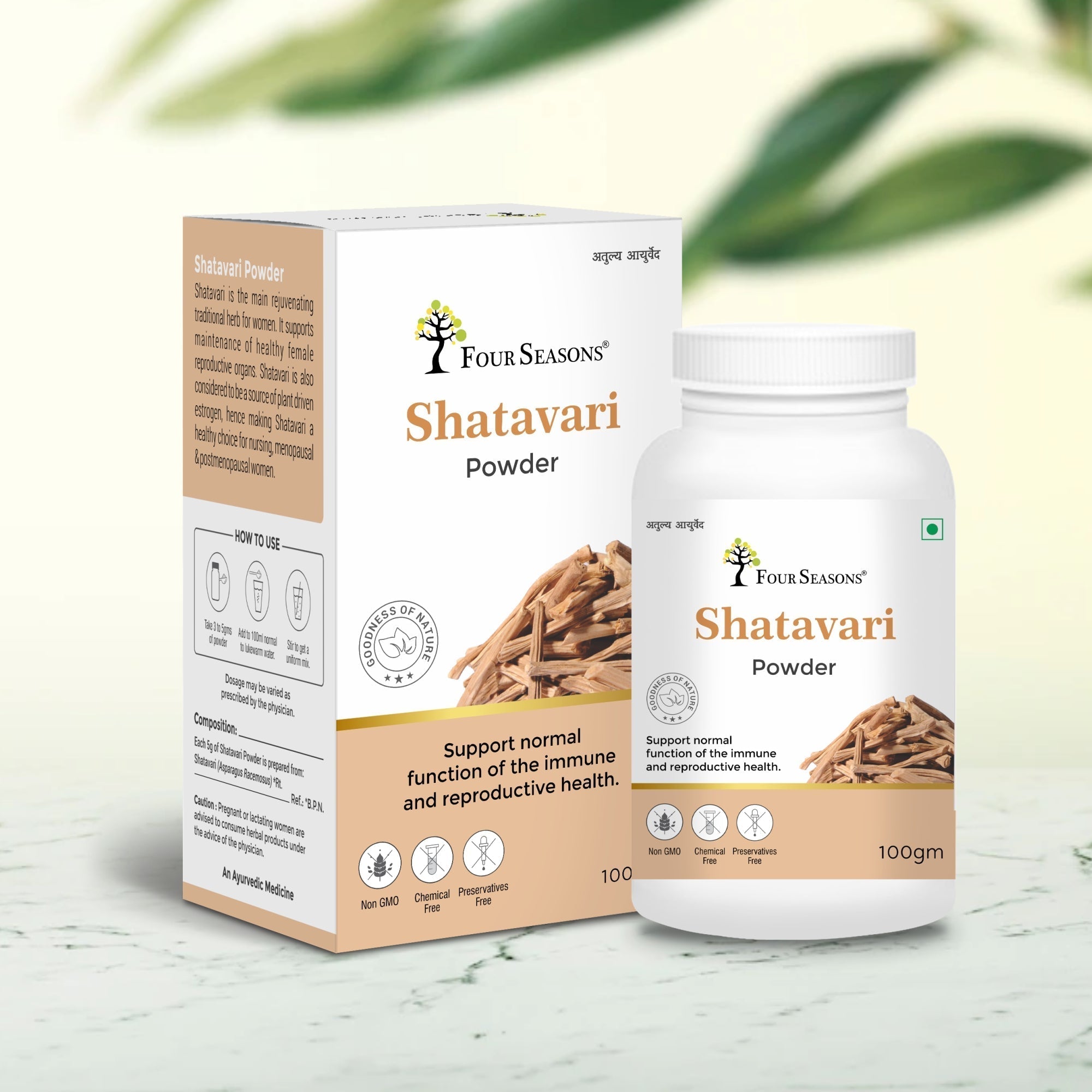 - Four Seasons Shatavari Powder is the best quality 100% natural herbs which help in improving female hormonal imbalance.