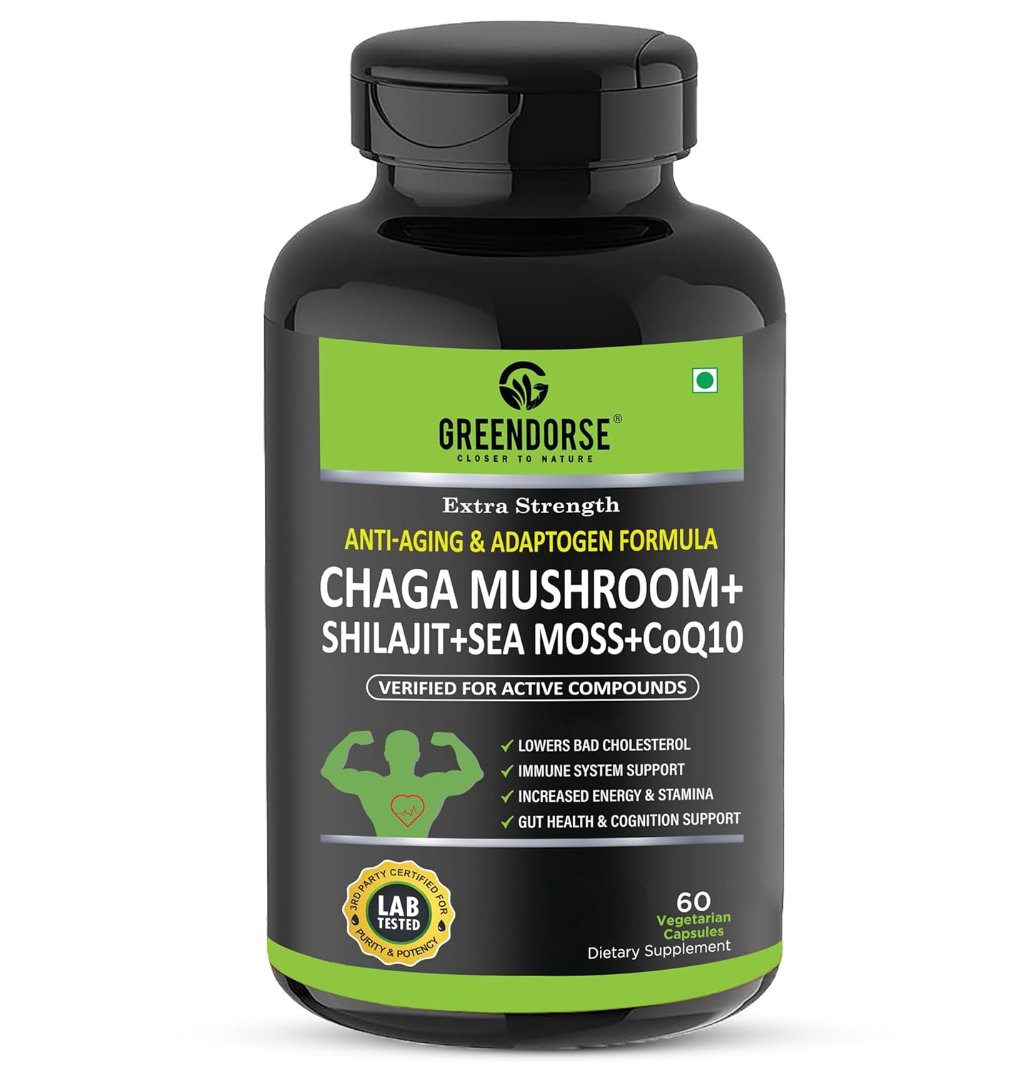 Greendorse Chaga Mushroom Extract With Shilajit, Coq10, Sea Moss - 60 Caps